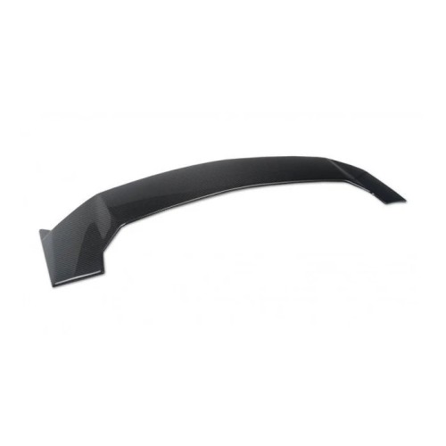 Crafted from high-quality, autoclave-baked carbon fiber with a high-gloss, UV-protected finish, the "visible carbon" construction showcases the intricate weave pattern. The cover is designed to fit seamlessly over the existing factory roof spoiler, providing an instant visual upgrade without requiring replacement of the original component.