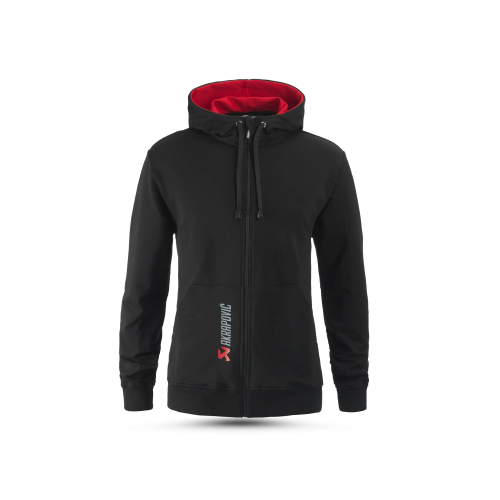 94% cotton 6% elastan black hoodie with red hood. Featuring Akrapovič logo on front pocket and large rear logo. Made in Slovenia.